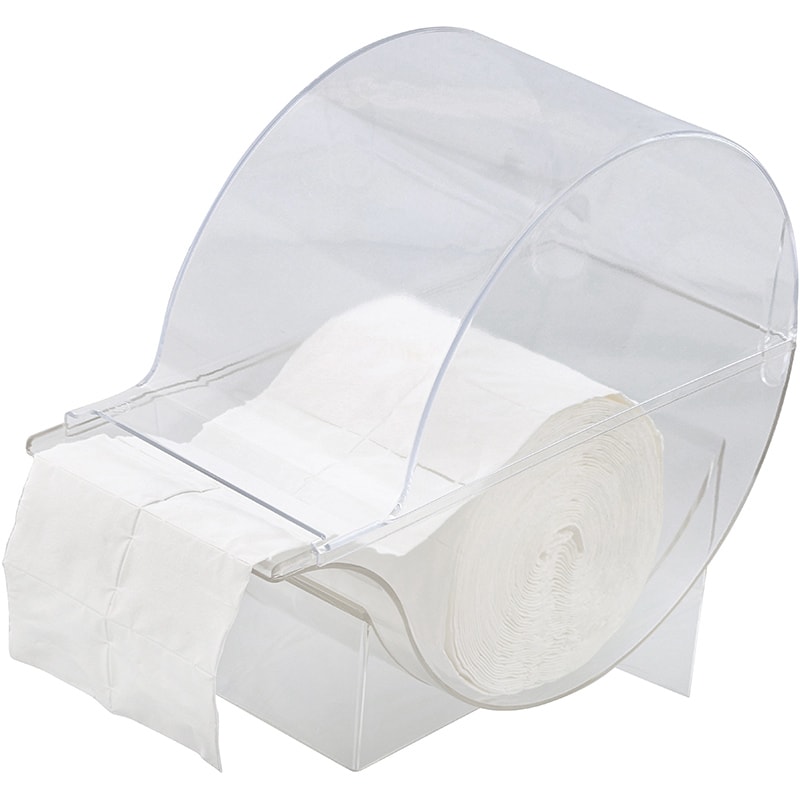Convenient and easy dispenser for nail pads. Greatly simplifies the process. Allows for easy access and storage of nail pads, avoiding potential mess. Simply attach pad inside dispenser and roll out sheets as needed. Pads not included.