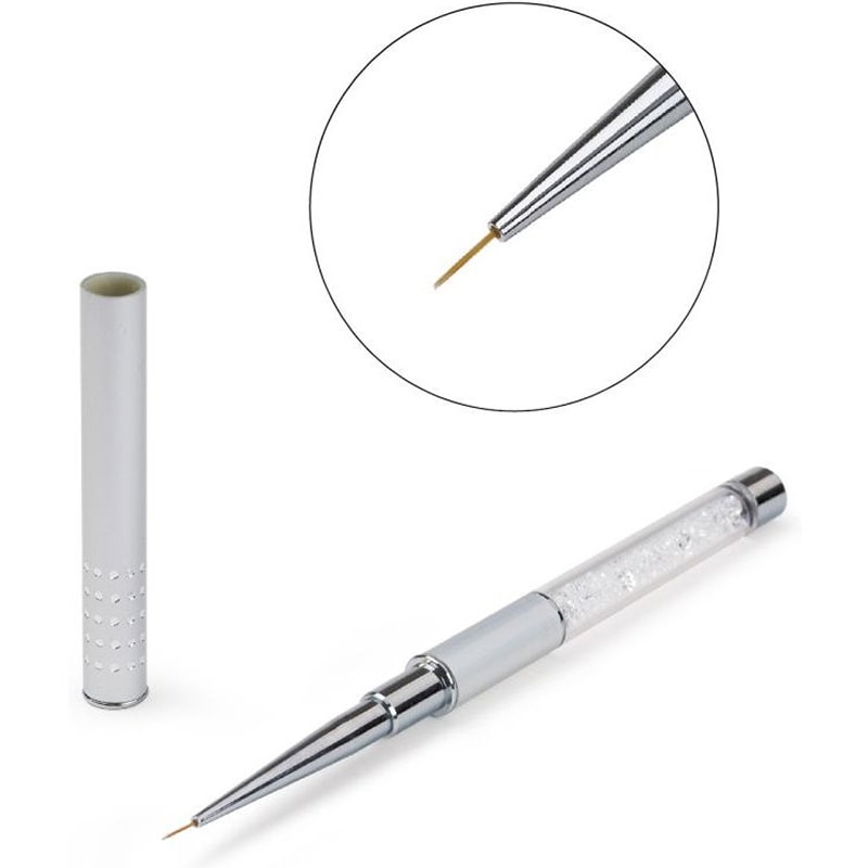 For fine and precise nail art. Very precise tip allows for very intricate designs to create a unique look. Includes lid to protect pen tip, and a glitter handle for added sparkle.