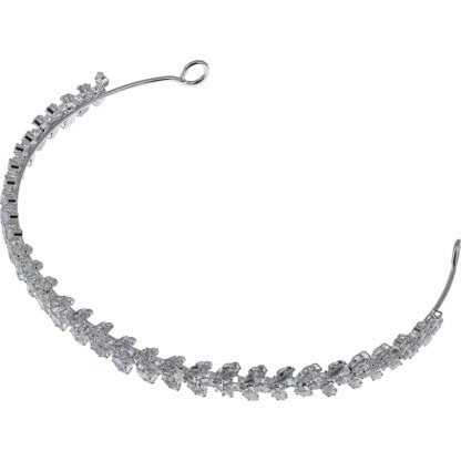 Classic metal Alice band adorned with zircon stones for a more luxurious and special wearing experience. Each stone is 1.2cm long and the band is lined with them across almost the entire wire. Light reflects off stones for eye-catching results. Includes two pins for better style management.