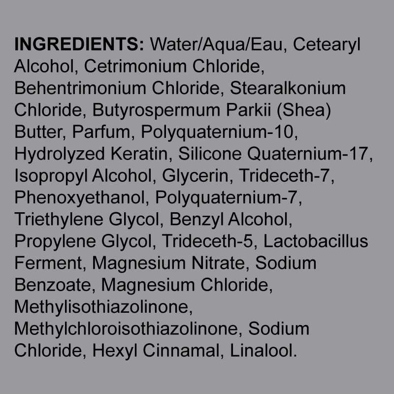 Infused with keratin and shea butter to soothe damaged or compromised hair that has been colored. Nourishes and repairs color-treated hair, preserving color and shine as well. Hair is protected against frizz and heat.