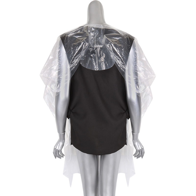 Incredibly lightweight and non-intrusive disposable plastic capes that ensure maximum hygiene and cleanliness. A one-size-fits-all design cape that can drape over other attire without getting too hot or compromising comfort and maneuverability.