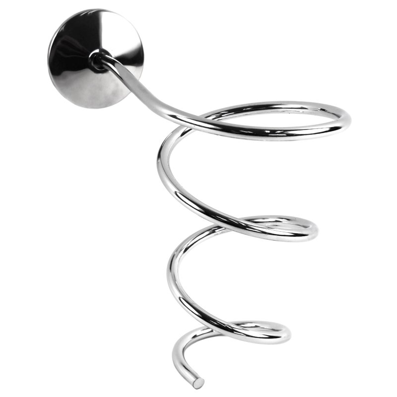Easily store and hold your hair dryer while not in use. Easy to attach and remove on almost any hard surface. Attached to surface using screws for secure fit. Stylish spiral design that can withstand heat from recently-used dryers. Minimalist design with professional quality. Provides easy storage, access and organisation.