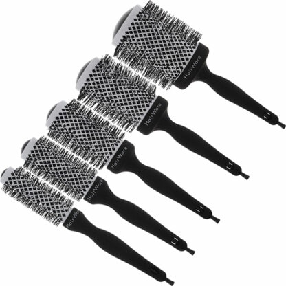 Designed for quick and efficient hair drying. Features an aluminium barrel with a white ceramic coating that heats up fast and retains heat for longer, speedily drying hair in the process. The diamond hole design maximises airflow from dryer to hair. Nylon bristles are gentle on all hair types. The rubberised grip handle provides maximum control throughout styling. Completed with retractable sectioning pick.