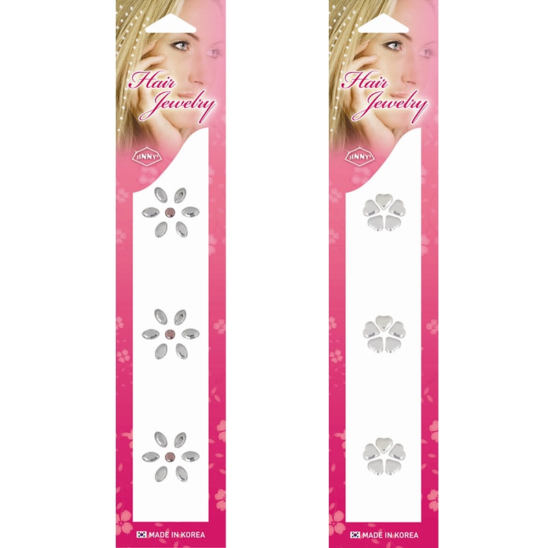 Peel off white plastic back, leaving the crystals attached to the clear plastic. Separate a section of hair and place line of crystals with sticky side of clear plastic touching the hair. Using a hot flat iron, heat the hair, crystals and clear plastic together for 5-8 seconds at about 160°C. Slowly peel off clear plastic, making sure the crystals are securely attached.