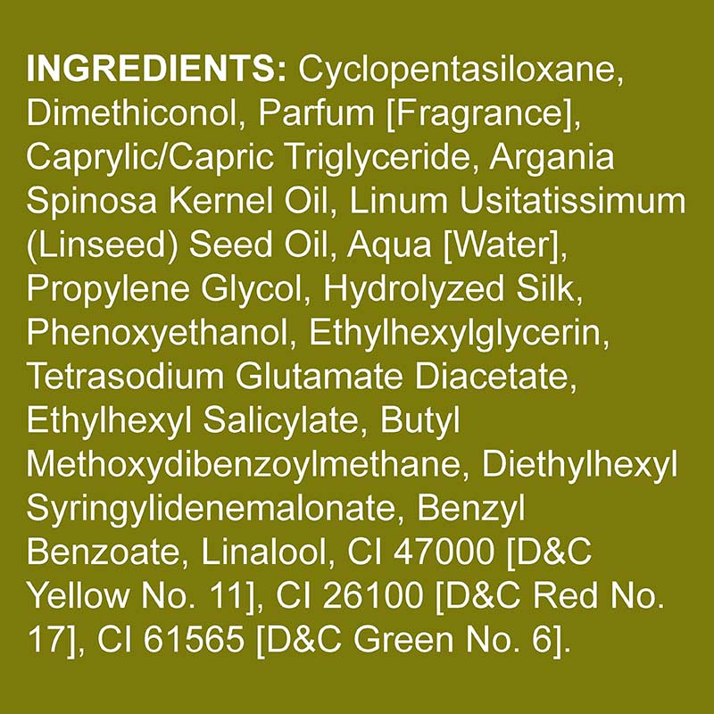 A nourishing treatment with the power of argan oil. Rehabilitates dry, dull, lifeless hair. Use on compromised hair for an instant boost in shine, hydration and movement. Only a few drops to damp or dry hair is needed for the natural oils to work. This serum can also be added to colouring formulas to enhance the sheen and vibrancy of your new colour. Simply add 3-5ml of product to the colouring mix.