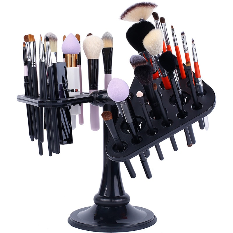 A stylish glossy black design perfectly suits any stylish salon, beauty parlor or spa. Features tilting storage mechanism to suit your different beauty sessions. Tilt and align the holder compartments as you desire. Slot design allows for storage of many products, regardless of size and shape.