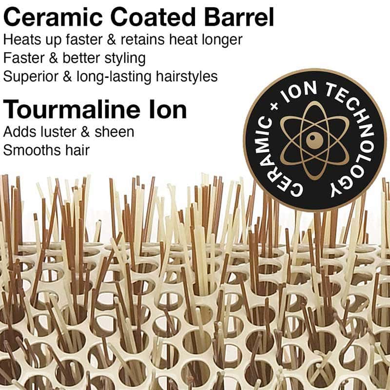 Ceramic Coated Barrel: Heats up faster & retains heat longer. Faster & better styling. Large vents maximize airflow. Lightweight & comfortable.