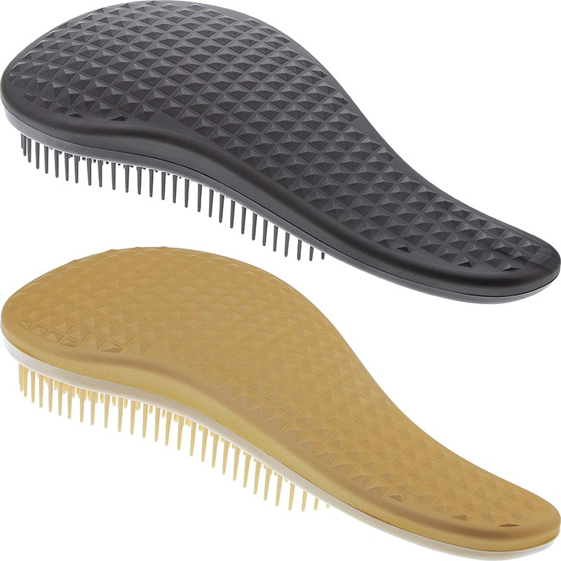 Rubberized detangle brush. Classic design with sophisticated finish. One piece detangler that is ideal for matted and knotted hair.