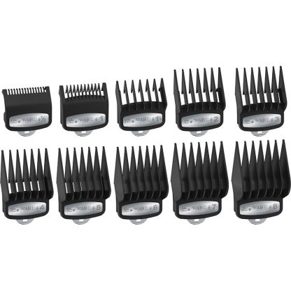 Premium clipper cutting guide combs from the U.S.A. with every size interval you need for every styling situation. Includes combs ideal for every length of hair to the shortest of detailed cuts to the longest of flowing cuts. Keep close to work station for instant changing for versatile use.