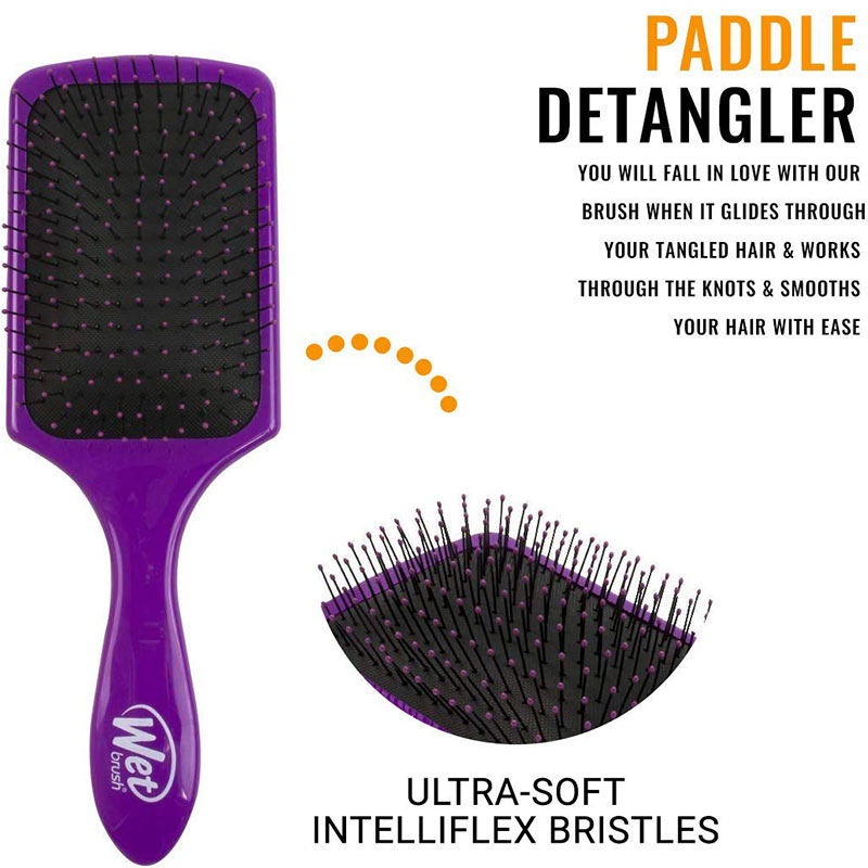 WetBrush is specially formulated with IntelliFlex™ bristles. These bristles are thin, strong and very flexible. This allows them to be flexible on one stroke and firm on the next. It eliminates all tugging, tearing, pulling and ripping of the hair to ensure no split ends or hair loss while providing healthy brushing and detangling. These bristles will glide through any hair type, combing out tangles effortlessly. Bristle flexibility enables protective and pain-free detangling. Bristles bounce back to their original form after each stroke eliminating all hair breakage and pain usually associated with hair brushing. The perfect transition from wash to style.