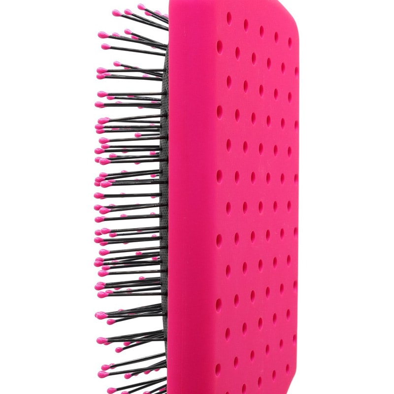 The professional design has come to the paddle detangler. Professional design with thicker, sturdier handle for more intense detangling. Thicker brush silhouette, grooved lines on handle and finger cut-outs at base of cushion provide excellent grip and control. Glides through tangles without breakage or pain. Vented cushion allows excess water to run out and makes clean-up easy.