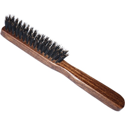 Every barbering stylist needs a very long and narrow brush. This is the brush for ultimate control over your style. The long handle puts you in full control of every movement of this brush, letting you do sweeping passes or small fixes and touch-ups. Use to separate hair during cutting, to create a finishing look, or fixing areas out of order. Its narrow brush head makes it great as a facial hair styler. Long, firm bristles make it ideal for all hair types, thicknesses and conditions.